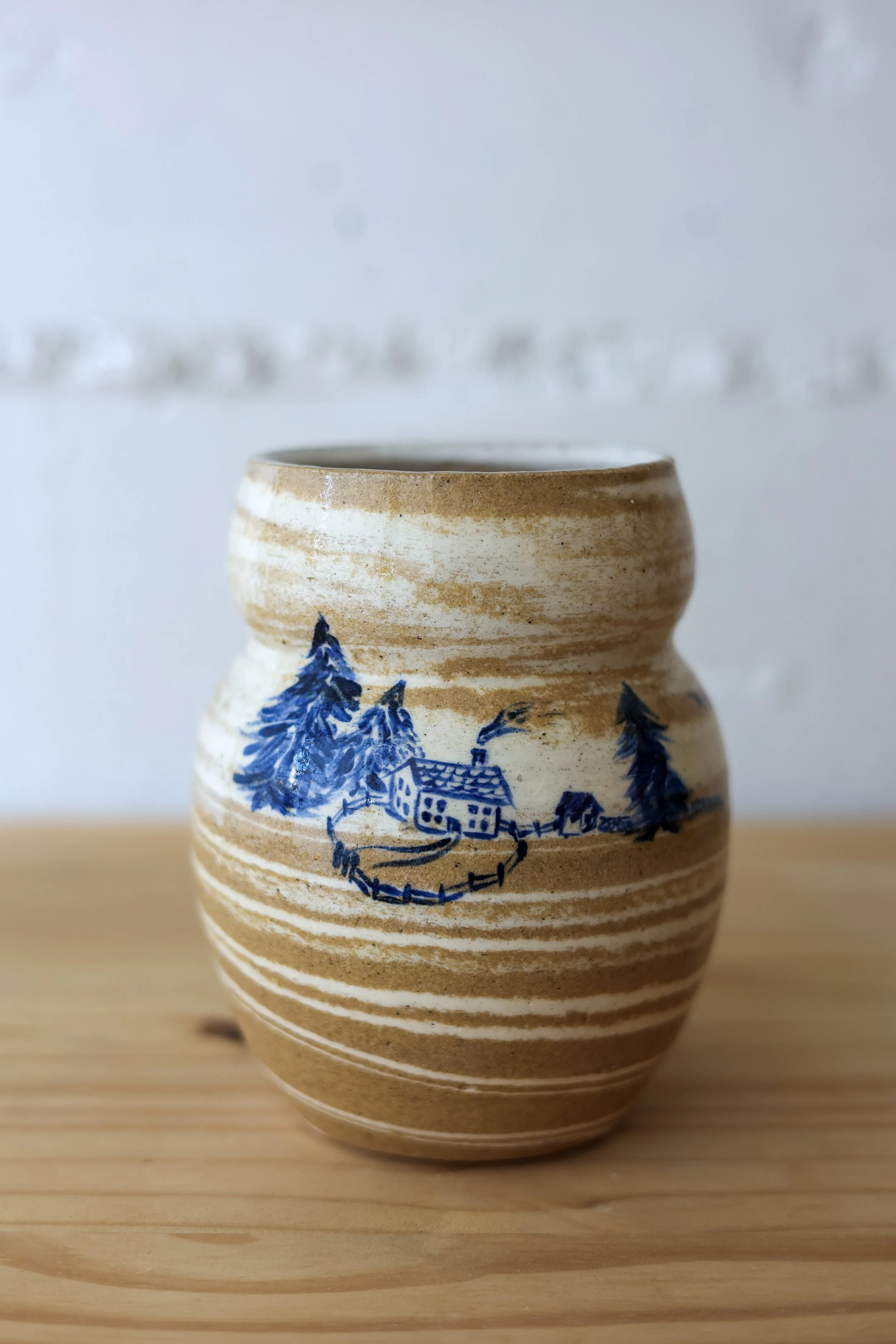 Raw speckled clay stoneware vase with two small handles. Glazed inside only with a satin warm white.